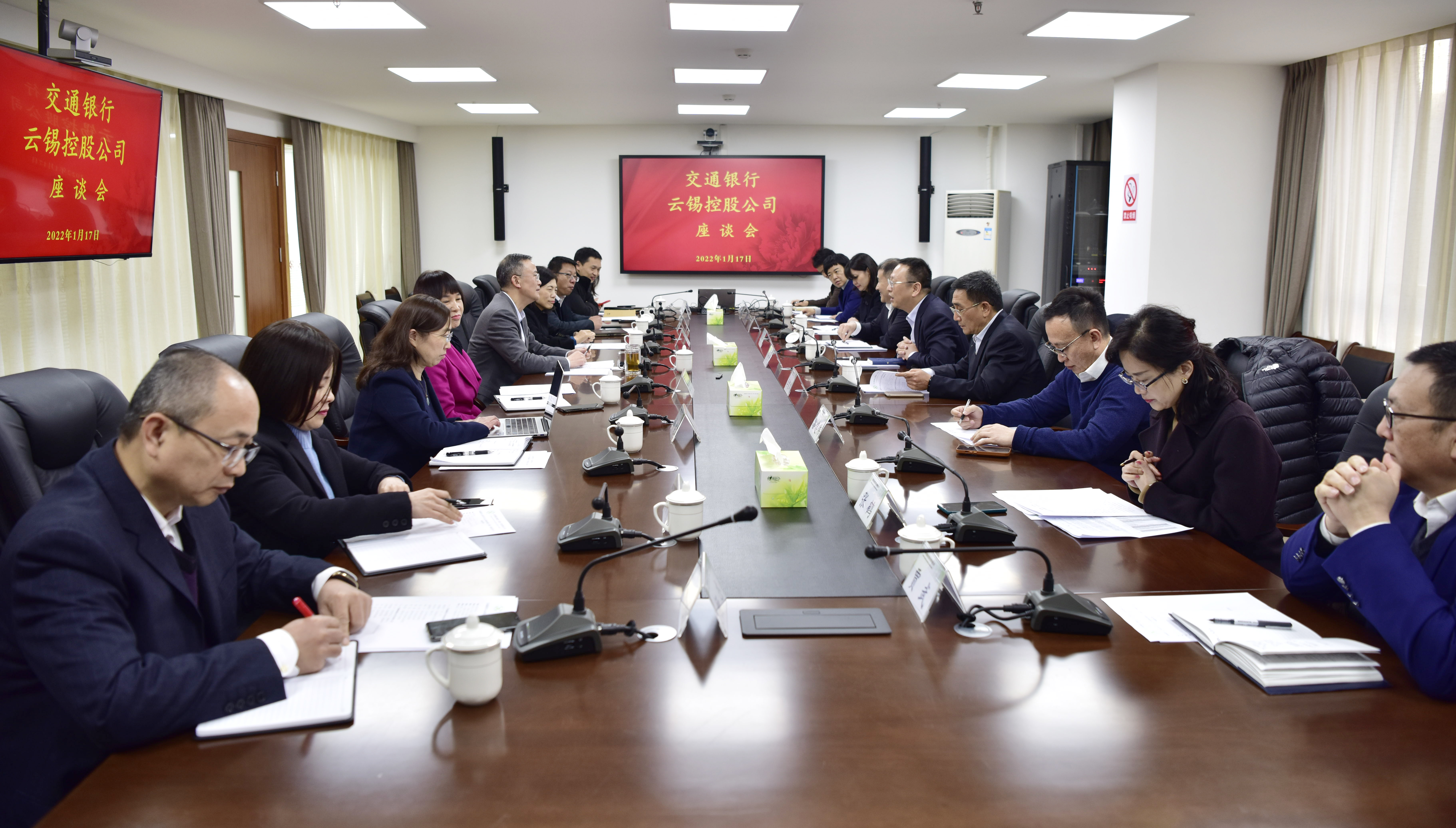 交通銀行云南省分行黨委副書記、副行長李智斌,副行長陳永慶;云錫控股公司黨委常委、副董事長楊奕敏,財務總監李向丹等參加交流。