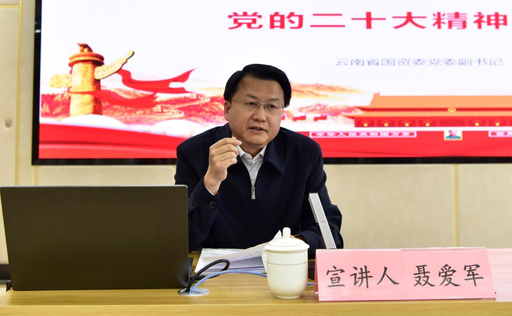 11月22日下午,根據省委統一安排部署,學習貫徹黨的二十大精神省委宣講團報告會在云錫舉行。省委宣講團成員、省國資委黨委副書記聶愛軍作宣講報告??毓晒军h委副書記、副董事長、總經理程睿涵主持報告會。