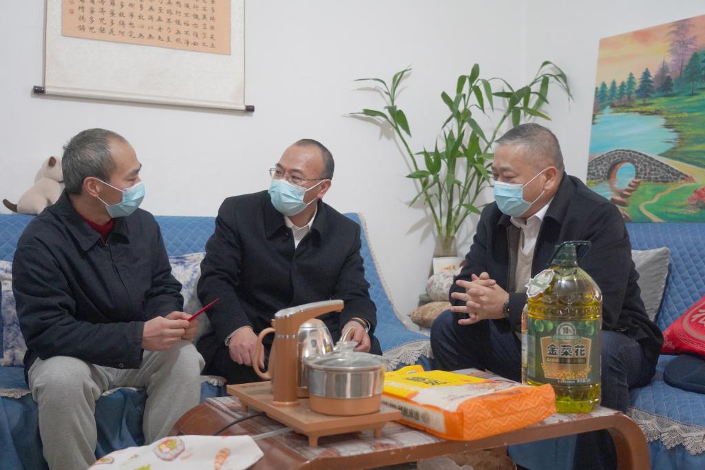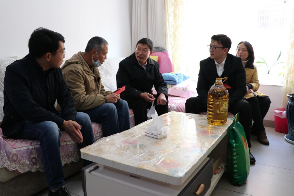 控股公司黨委書記、董事長孫勇走訪慰問機(jī)械(錫都實業(yè))公司困難職工楊文(尚海英/攝)