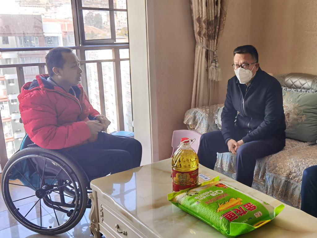 控股公司紀(jì)委書記、省監(jiān)委駐云錫監(jiān)察專員劉俊走訪慰問研究院公司困難黨員王建德(張媛媛/攝)