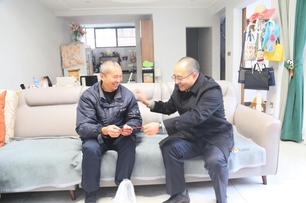 控股公司黨委副書記、工會主席姚家立走訪慰問卡房分公司困難職工陳文學(xué)(張瑞華/攝)
