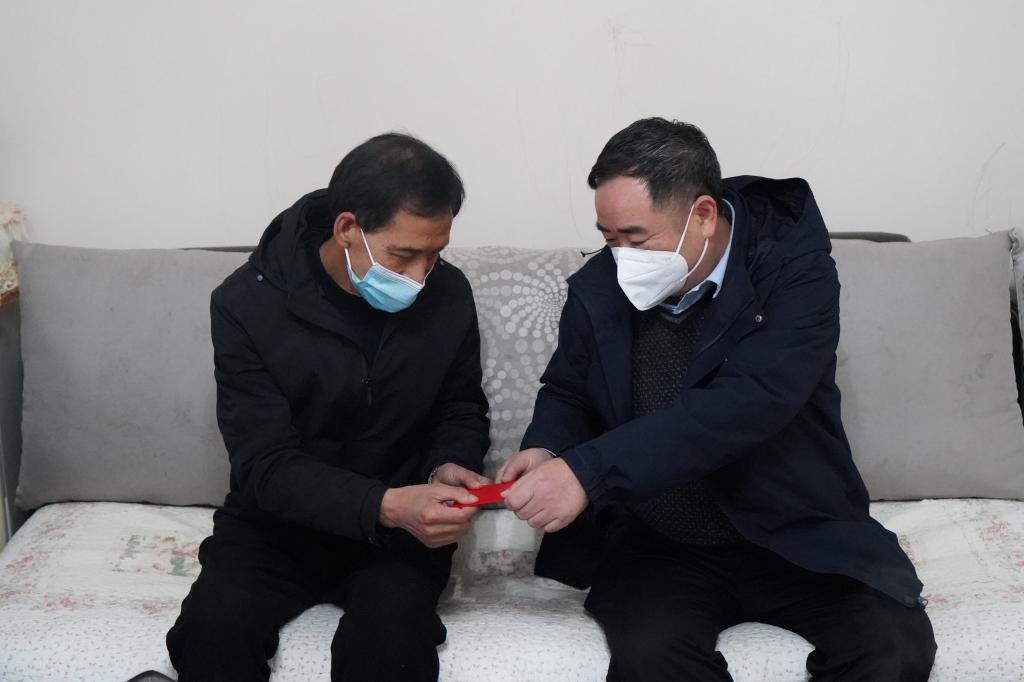 控股公司黨委副書記、副董事長、總經(jīng)理程睿涵走訪慰問老廠分公司離休干部梁占堯(李華為/攝)
