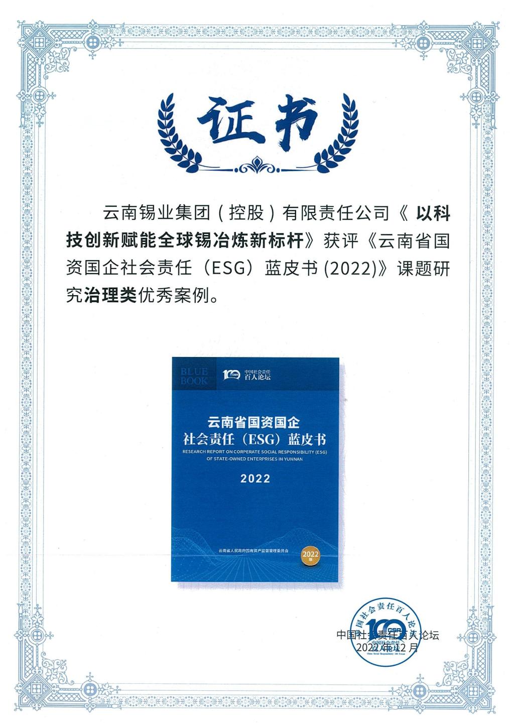 2022年以來,云錫控股公司持續(xù)加強社會責(zé)任管理,由董事會辦公室牽頭開展社會責(zé)任課題研究、社會責(zé)任報告編制等系列工作,受邀參加云南省人民政府新聞辦公室舉辦的云南省屬國有企業(yè)社會責(zé)任(ESG)工新作聞發(fā)布會,全面展現(xiàn)了十年來云錫賡續(xù)“忠黨報國、產(chǎn)業(yè)報國”紅色基因,以服務(wù)國家戰(zhàn)略需求為己任,深入貫徹新發(fā)展理念,主動融入新發(fā)展格局,積極服務(wù)云南省“三個定位”,全面履行國有企業(yè)社會責(zé)任的積極實踐和突出成效。精心組織參加國務(wù)院國資委社會責(zé)任局、云南省國資委舉辦的云南國資國企社會責(zé)任報告發(fā)布會,圓滿發(fā)布云錫控股公司首本《社會責(zé)任報告》,從“責(zé)任專題”“責(zé)任管理”“穩(wěn)健治理”“做優(yōu)品牌”“綠色安環(huán)”“賦能員工”“企業(yè)公民”等維度,全面展示公司黨的建設(shè)、生產(chǎn)經(jīng)營、科技創(chuàng)新、改革發(fā)展、社會責(zé)任工作特色亮點,充分展現(xiàn)云錫履行政治責(zé)任、經(jīng)濟責(zé)任、社會責(zé)任的國企擔(dān)當。在此基礎(chǔ)上,董事會辦公室深入挖掘社會責(zé)任工作亮點成效,梳理典型案例上報參評,《以科技創(chuàng)新賦能全球錫冶煉新標桿》《持續(xù)做強做優(yōu)主業(yè) 打造云南省有色金屬產(chǎn)業(yè)整合發(fā)展平臺》兩個案例成果成功入選《云南省國資國企社會責(zé)任(ESG)藍皮書》,并獲評“優(yōu)秀案例”,展示了云錫以實際行動造福職工群眾、回饋社會期待、引領(lǐng)行業(yè)進步的良好形象。
