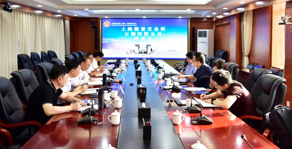 7月14日下午,上海期貨交易所黨委書記、理事長田向陽,黨委委員、紀委書記李鮮一行調研云錫參與期貨市場、服務綠色低碳發展等方面情況??毓晒军h委書記、董事長孫勇匯報相關工作。
