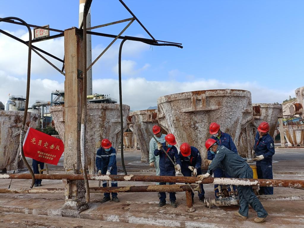 黨建引領賦能效。選礦車間黨支部全面堅持黨的領導,積極開展黨建工作融入生產(chǎn)經(jīng)營專項行動,探索黨建與生產(chǎn)經(jīng)營的結(jié)合點、切入點,圍繞“中心工作抓黨建,抓好黨建促發(fā)展”這一主線,聚焦車間在生產(chǎn)經(jīng)營、安全環(huán)保、科技創(chuàng)新及降本增效方面的痛點、堵點、淤點,實施黨建“四個項目”、“兩隊一區(qū)一崗”和“黨員四亮”等活動。把具體化、差異化的黨員承諾事項替代了模版式、套用式的復制式承諾,黨員同志亮身份、亮職責,在急難險重任務面前沖在前,勇?lián)敚瑺幭蠕h。選礦車間黨支部成立黨員突擊隊1個、責任區(qū)3個,形成了“突擊工作有人上、責任項目有人管、重點部位有人盯”的工作機制。針對更換渣包車舉升油缸油封存在的難點,積極組織黨員突擊隊和攻關隊,黨員楊師傅勇攻難題,帶領修理人員想辦法、出點子、拿措施,將球銷完好取出,每次更換油缸密封可節(jié)約成本1.8萬元;針對渣緩冷廠循環(huán)水管道結(jié)晶堵塞嚴重問題,黨員主動作為,更改管道,提高流通速度,減緩管道堵塞時間;針對銅精礦質(zhì)量指標穩(wěn)定性不高的問題,切實做到關鍵任務有組織引領,關鍵技術有黨員攻關,關鍵指標有黨員盯守,關鍵時刻有黨員沖鋒,發(fā)揮生產(chǎn)經(jīng)營出題,黨建攻堅解題的作用。