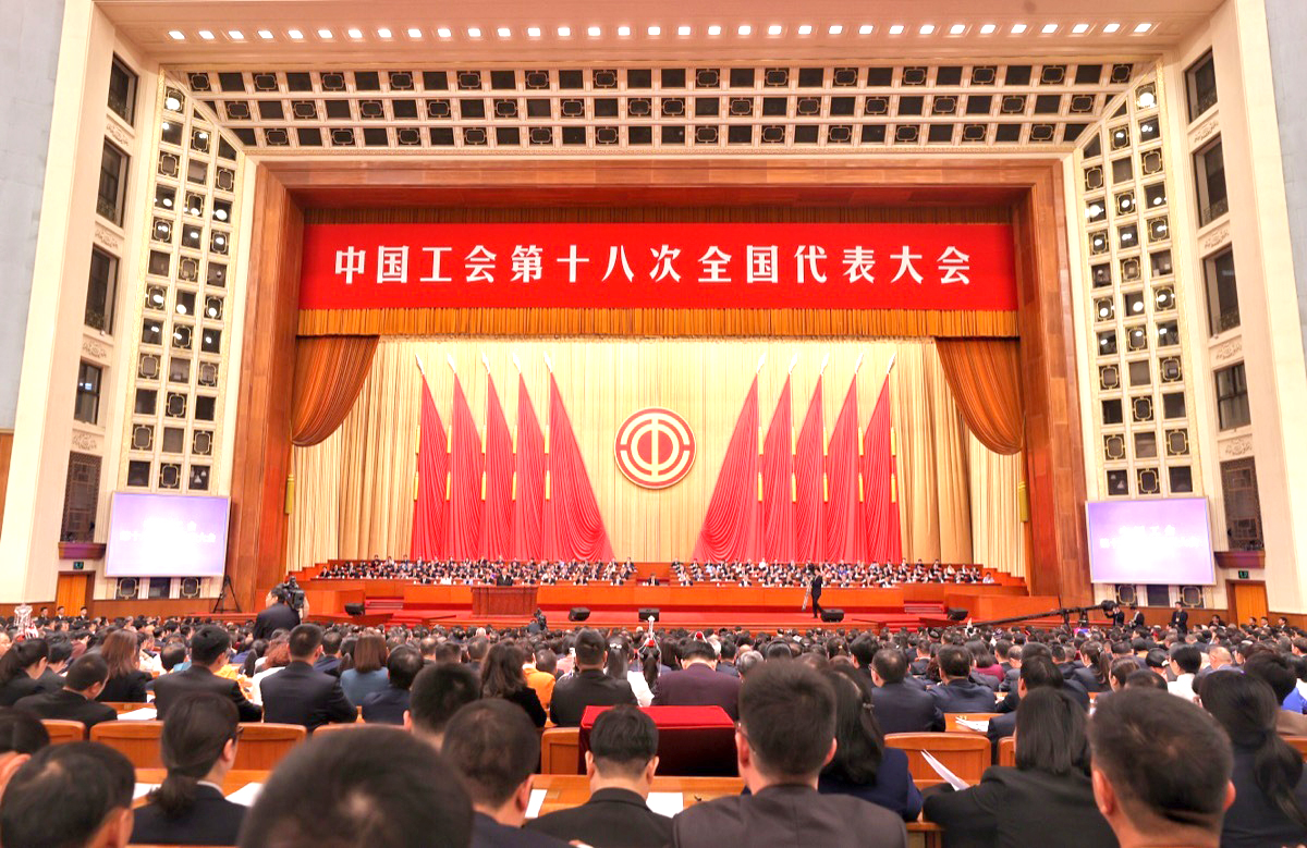 中國(guó)工會(huì)第十八次全國(guó)代表大會(huì)10月9日上午在北京人民大會(huì)堂開(kāi)幕。出席此次會(huì)議的共有來(lái)自全國(guó)各地工會(huì),鐵路、民航、金融工會(huì),中央和國(guó)家機(jī)關(guān)工會(huì)聯(lián)合會(huì)的35個(gè)代表團(tuán)、2002名代表。此外,還有約60名特邀代表、50名港澳來(lái)賓出席大會(huì)。