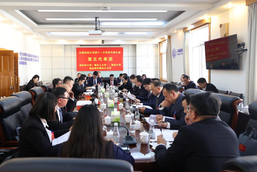 由新材料公司(錫化工公司)、物流公司、錫業股份錫業分公司黨員代表組成的第五代表團在四樓一會議室展開熱烈討論。控股公司黨委常委、副總經理吳君,紀委書記、省監委派駐云錫監察專員蘭菊參加討論,聽取黨員代表意見建議。