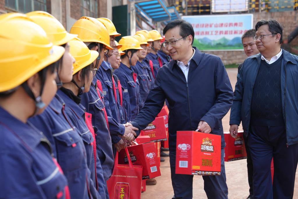 心系職工,情暖新春。龍年春節期間,控股公司黨委副書記、副董事長、總經理韓守禮深入生產一線看望慰問堅守崗位的干部職工,向大家致以節日的問候和誠摯祝福,勉勵大家要切實保證安全、高效、穩定生產,以實干實績助力云錫創建錫銦行業世界一流企業。控股公司總經理助理李師勇參加慰問。