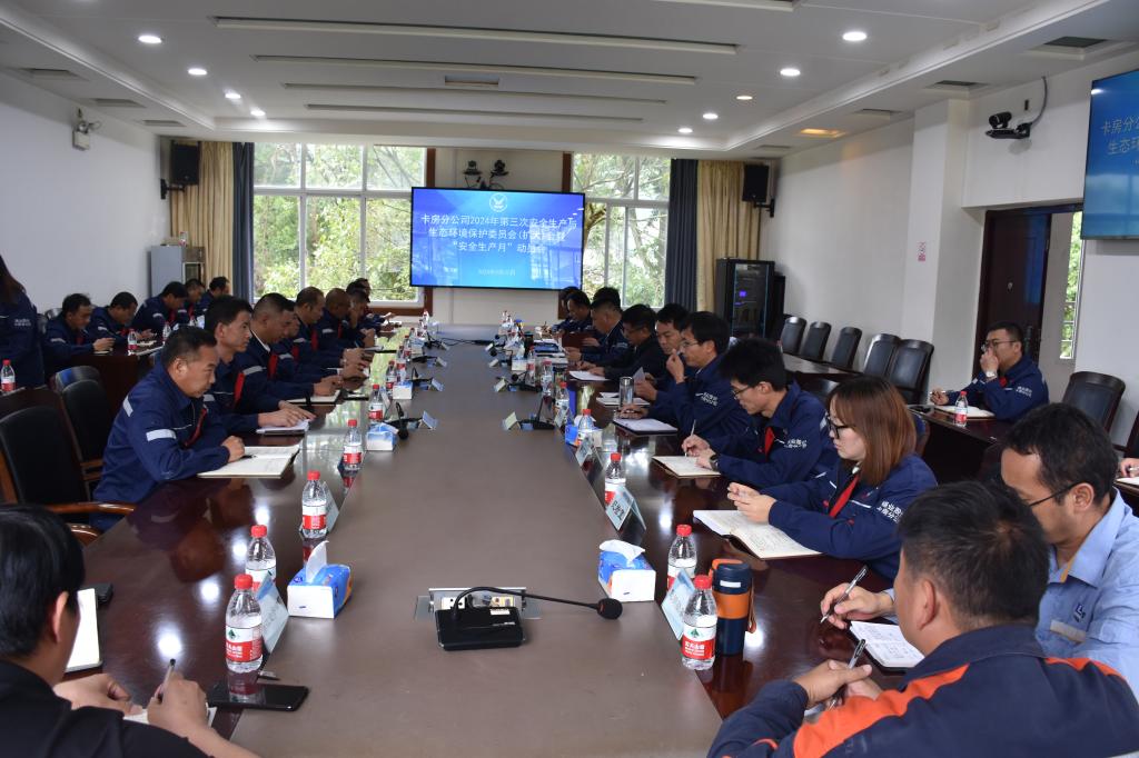 卡房分公司召開第三次安委會(擴大)會暨“安全生產月”動員會,集中學習《深入學習貫徹習近平關于應急管理的重要論述》《金屬非金屬礦山重大事故隱患判定標準補充情形》,觀看《安全生產 責任在肩》,傳達紅河州安委辦《警示函》。(周衡)