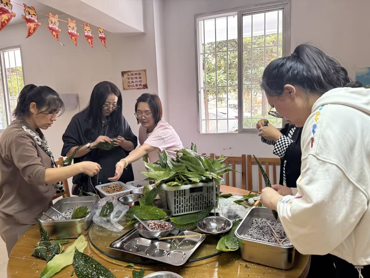 大屯錫礦后勤綜治車間開展包粽子活動,通過認真挑選粽葉、包裹糯米和餡料、用繩子扎緊等環節,讓職工切身感受包粽子的具體工藝技巧和中華傳統節日的文化內涵。(蘇懂)