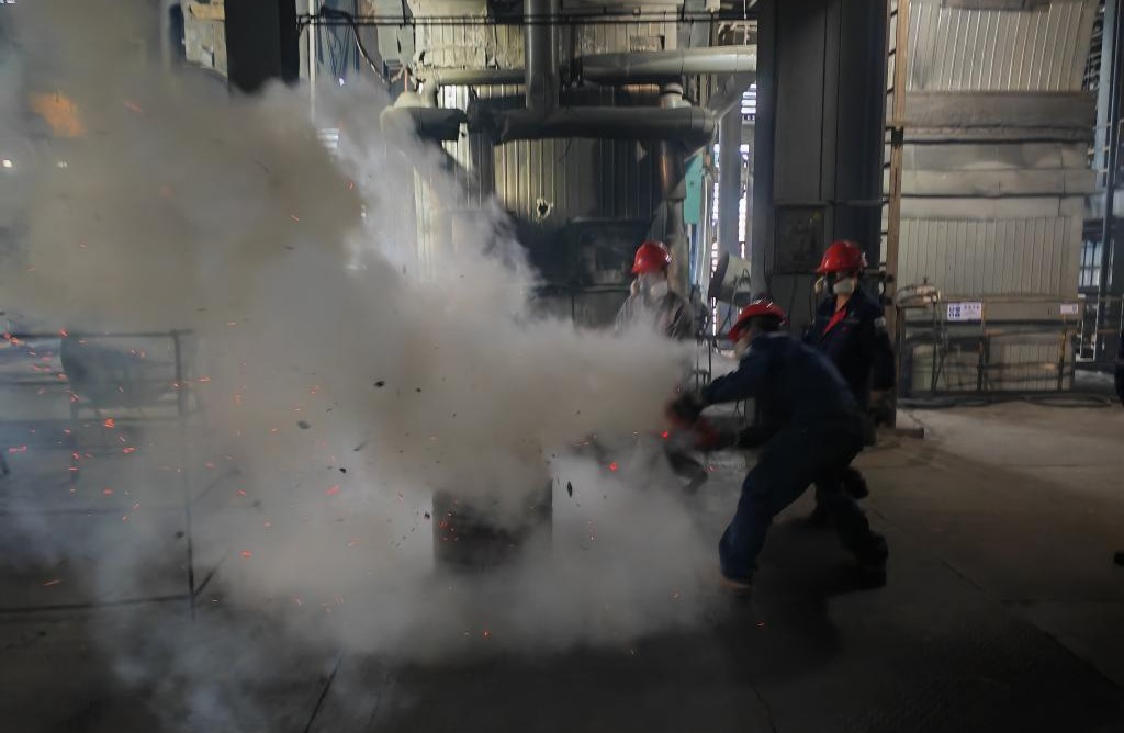 銅業(yè)分公司熔煉車間在頂吹工序開展頂吹吹煉爐泡沫渣事故專項應急演練、火災事故應急演練,各參與者積極發(fā)揮專業(yè)能力,按照既定計劃和流程、應急預案,各自盡責、密切合作,進一步提升團隊合作意識和應急處置能力。(李金鳳)