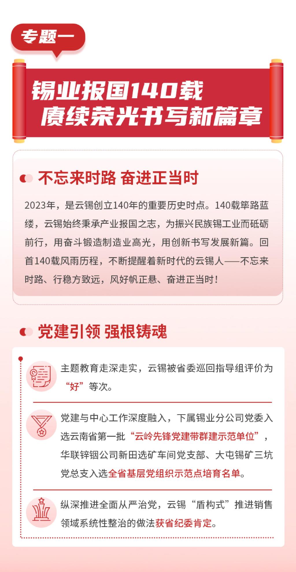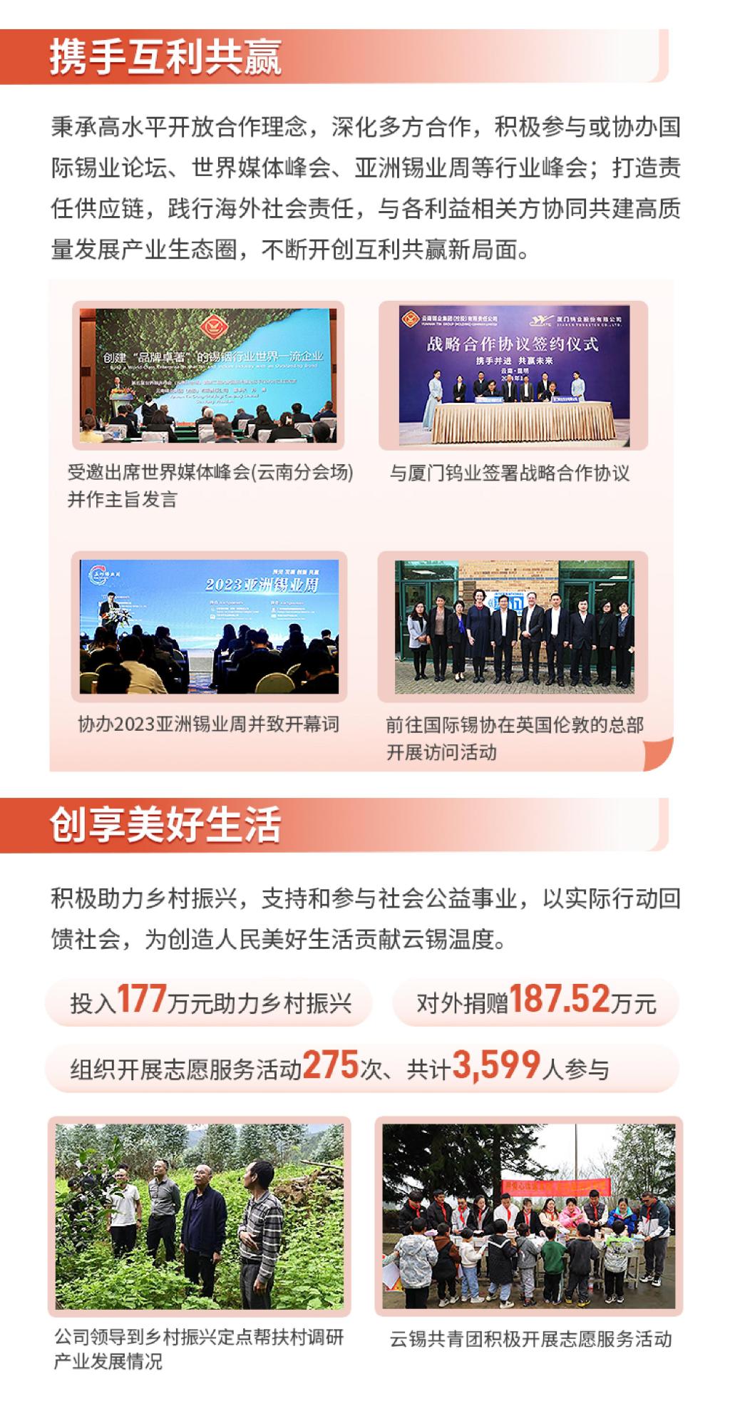 9月29日,《云南錫業(yè)集團(控股)有限責任公司2023年社會責任(ESG)報告》正式發(fā)布,這是云錫控股公司發(fā)布的第二份社會責任報告。報告生動展示了2023年公司在經(jīng)濟、環(huán)境、社會、治理、價值創(chuàng)造等方面的ESG實踐與績效,讓我們通過一圖讀懂的方式一起來了解。