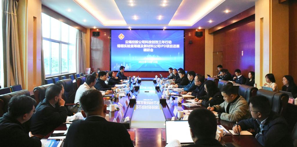 10月12日上午,控股公司黨委副書記、副董事長、總經理韓守禮率隊到錫銦實驗室,就實驗室籌建、科技創效三年行動、新材料公司IPD項目等工作進行調研。