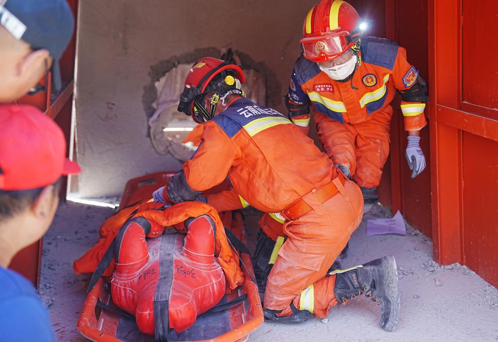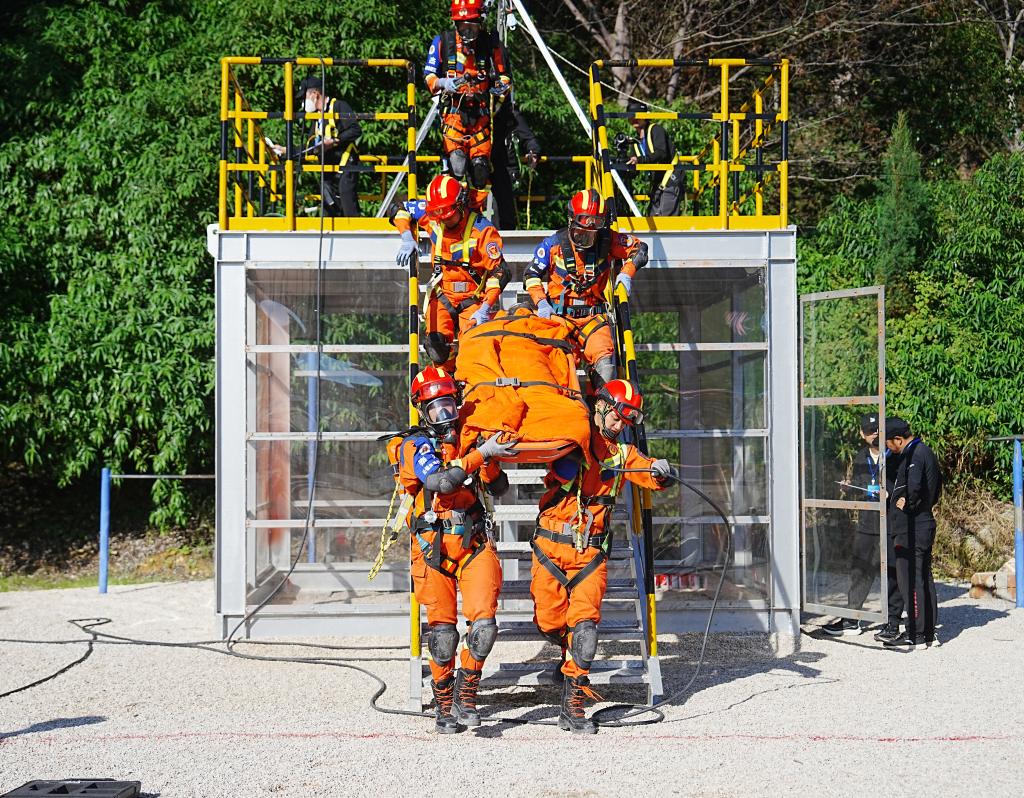 在地震災(zāi)害被困人員搜救處置項目中,選手仿佛置身于真實的地震現(xiàn)場,配合默契,搬運(yùn)設(shè)備、設(shè)置支護(hù)、鑿巖穿孔、全力搜救……每一個環(huán)節(jié)都緊張有序,團(tuán)隊協(xié)作和應(yīng)急處置能力得到了充分體現(xiàn),他們用實際行動詮釋了什么是責(zé)任與擔(dān)當(dāng)。