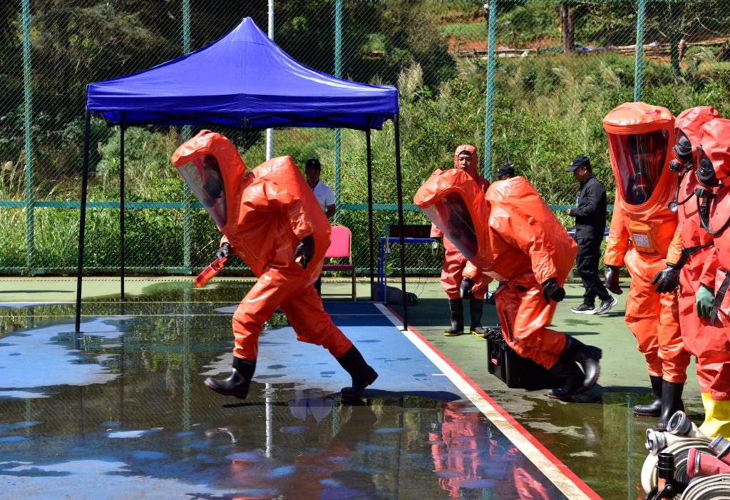 在危險化學(xué)品工藝管線泄漏處置項目中,選手臨危不懼,迅速穿戴防護(hù)裝備,準(zhǔn)確找到泄漏點,有序進(jìn)行緊急封堵,有效防止事故擴(kuò)大和次生事故發(fā)生。