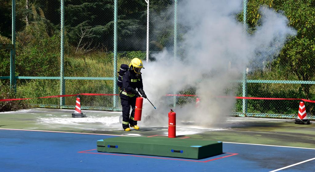 在電氣火災(zāi)處置項目中,選手熟練運(yùn)用消防設(shè)備,反應(yīng)速度快,滅火技巧準(zhǔn),充分展現(xiàn)專業(yè)應(yīng)對能力。