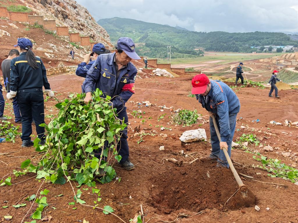 銅業分公司在渣場區域開展濕地松等樹苗養護,組織生態環境知識有獎問答,發放宣傳冊,強化員工環保責任。(賈嬌)