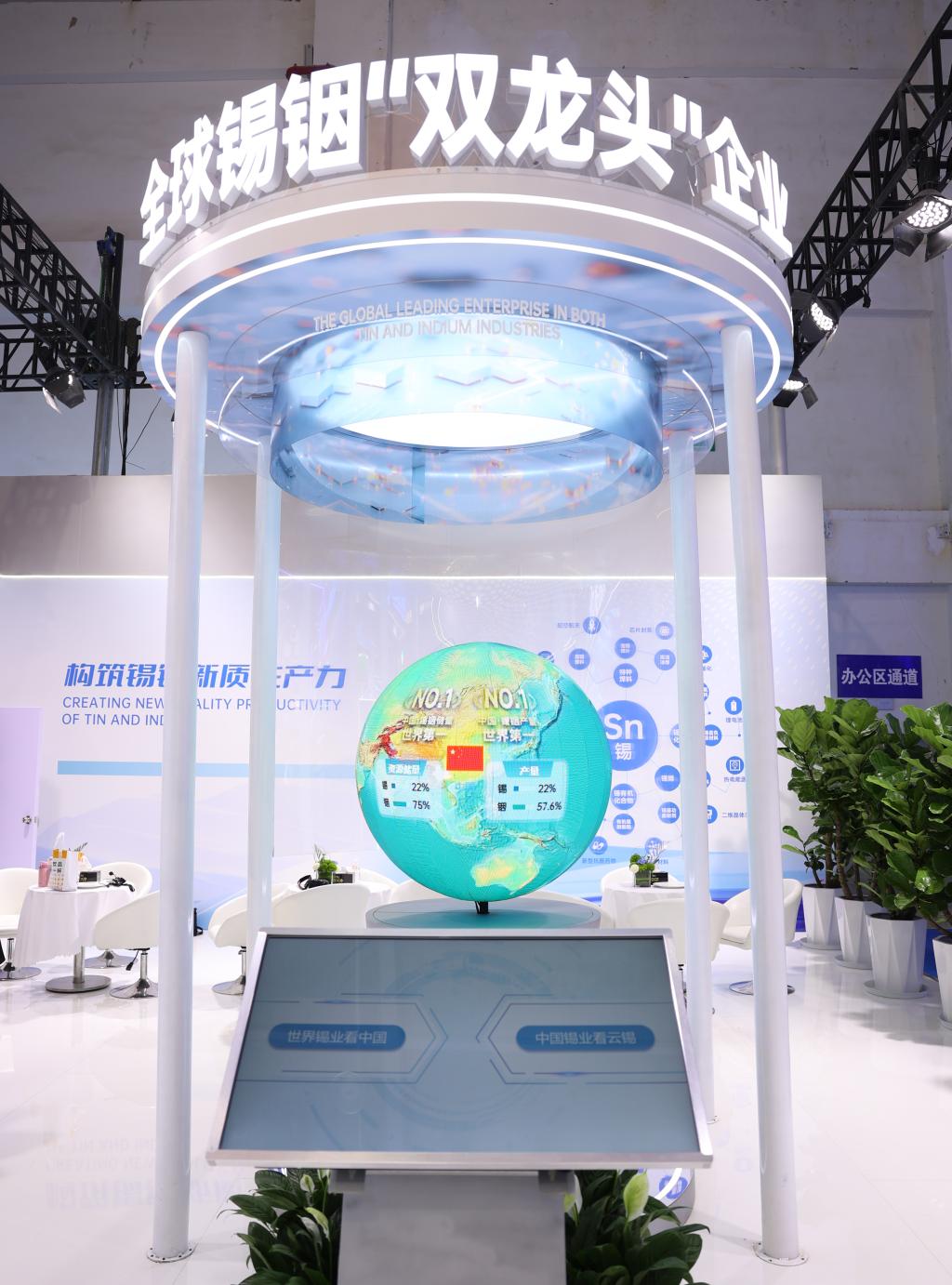 地球智能互動——探知錫銦世界之源。地球儀智能互動裝置是云錫展臺的另一人氣打卡點。輕觸屏幕,地球儀同步轉動,全球錫銦資源分布實時呈現,云錫產業布局和銷售網絡清晰呈現,喻寓著百年云錫以開放之姿擁抱世界,攜手全球伙伴開拓更大可持續發展空間。