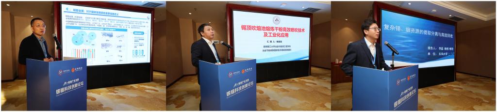 先導科技集團副總裁朱世彬作《稀散金屬的戰略重要性》報告,系統闡釋了銦等關鍵資源的戰略價值與產業鏈協同發展路徑;昆明理工大學楊世亮教授分享了與云錫聯合攻關的成果 ——《錫頂吹熔池熔煉干粉噴吹新技術研發及工業化應用》,該技術首次在有色金屬冶煉行業內實現干粉物料噴吹入爐,助力錫頂吹熔煉過程高效節能、綠色低碳技術進步;東華大學李磊教授委托錫銦實驗室劉雄資工程師圍繞《復雜錫、銦資源的提取分離與高效回收》展示了針對低品位資源的高效回收技術體系。