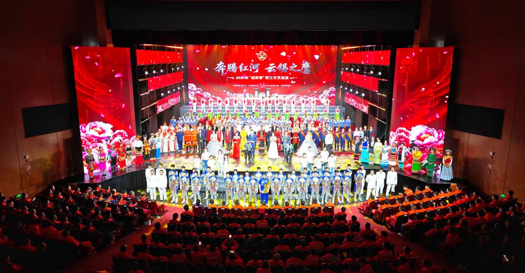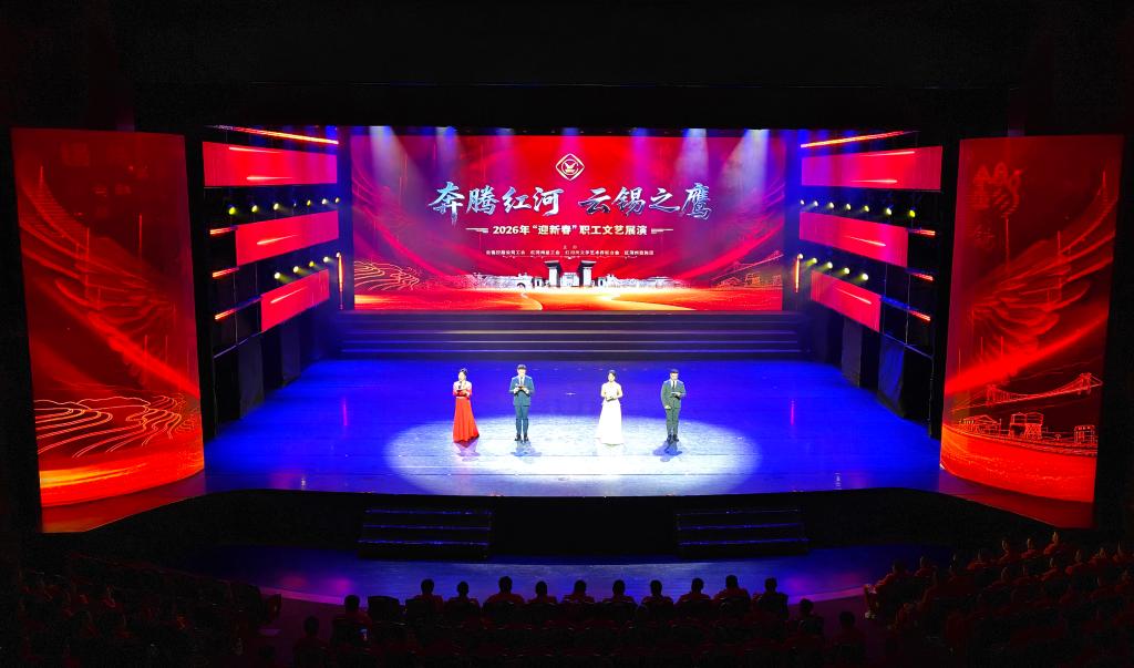奔騰紅河潮涌不息,云錫之鷹志存高遠。2月8日晚,由云錫控股公司工會和紅河州總工會聯合州文聯、州歌舞團共同舉辦的“奔騰紅河·云錫之鷹”2026年云錫“迎新春”職工文藝展演在蒙自市紅河大劇院隆重舉行,以文藝為橋、以團結為翼,彰顯政企共興、民族團結、產業繁榮的時代氣象。