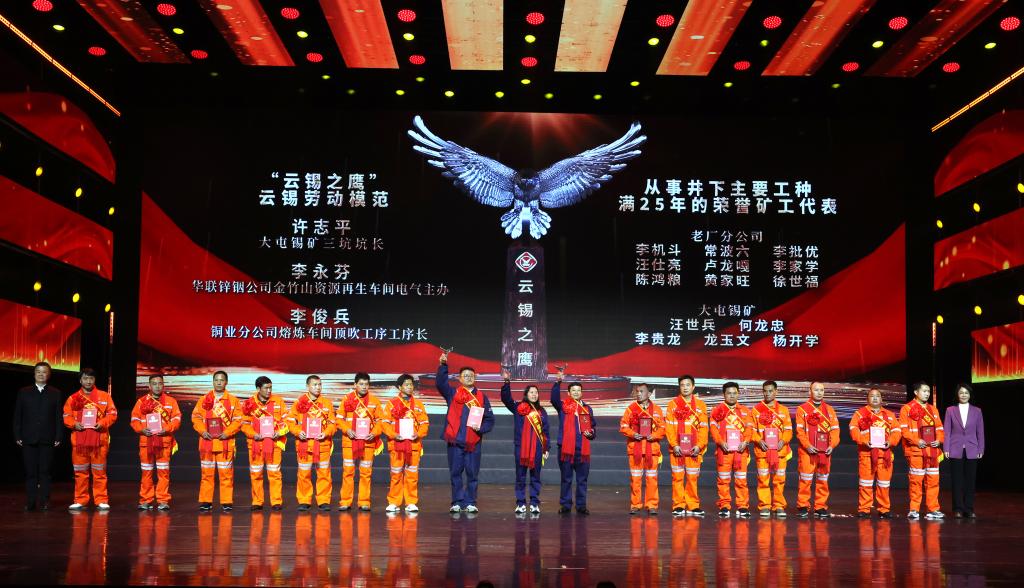 從總經理獎獲獎團隊,到“十佳崗位能手”“十佳青年”“云錫勞動模范”,再到默默堅守井下滿30年和25年的榮譽礦工,一批批扎根崗位、勇擔重任的奮斗者成為舞臺的焦點,生動詮釋了以奮斗者為本的價值導向,激勵著全體云錫人繼續鷹擊長空、逐光而行。