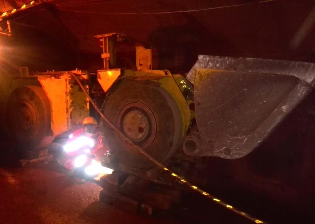 阿特拉斯EST2D電動鏟運機是大屯錫礦一坑五工區主力出礦設備,自去年5月份投入使用以來,已經運行了3千多個小時,平均每天承載著450噸的生產任務。5天前,這臺鏟運機轉向油缸座斷裂,造成轉向功能失效,設備停產。一坑設能股技術人員及時趕到現場,判斷故障原因是鏟運機長時間運行,車架上的轉向油缸座達到疲勞極限而斷裂。由于油缸座和車架是一體結構,擺在大家面前的只有兩個辦法,要么更換整個前車架,要么重新焊接油缸座子。更換前車架需20余萬元,且從瑞典發貨需將近2個月的供貨周期。為減少對生產的影響,節約成本,設能股決定采用焊接修復。