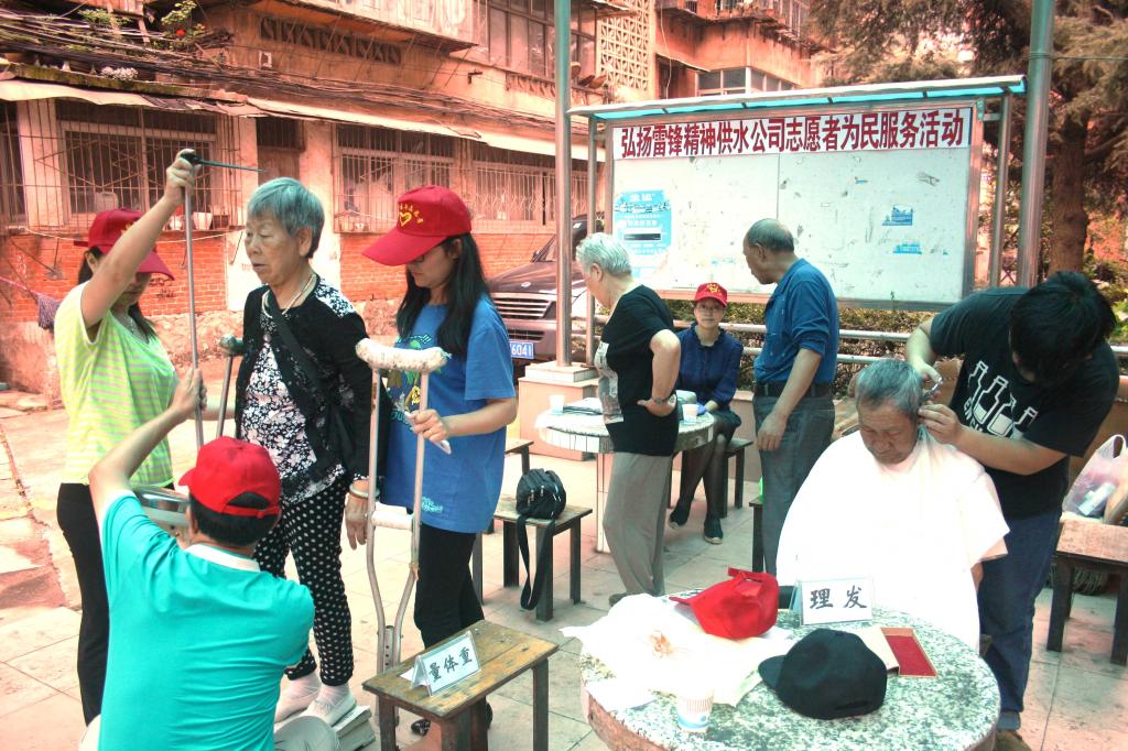 活動(dòng)期間,來自供水公司各部門工會(huì)、學(xué)雷鋒志愿服務(wù)隊(duì)的10名志愿者免費(fèi)為民服務(wù):理發(fā)、測血壓、量身高、稱體重、磨刀、擦皮鞋、贈(zèng)送山泉水、發(fā)放節(jié)能宣傳資料、剪指甲、修(畫)眉毛等。供水公司的部份職工、退休職工、職工家屬及市民對(duì)此點(diǎn)頭稱贊。