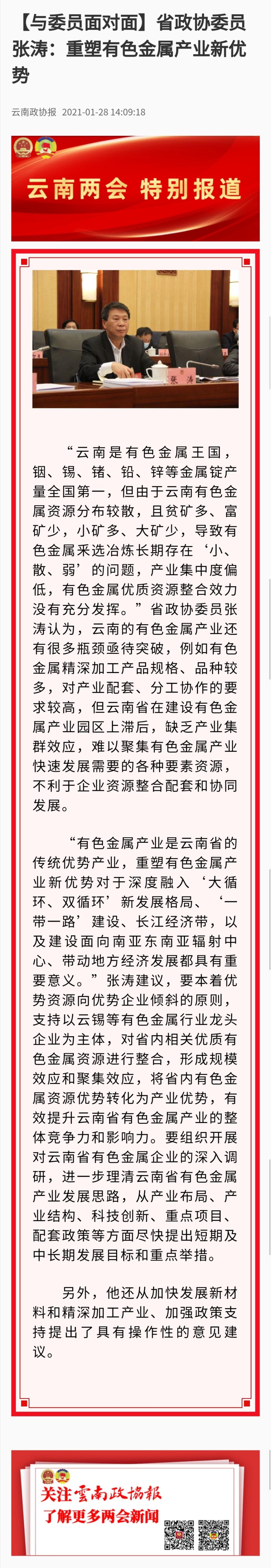 【與委員面對面】省政協(xié)委員張濤:重塑有色金屬產(chǎn)業(yè)新優(yōu)勢