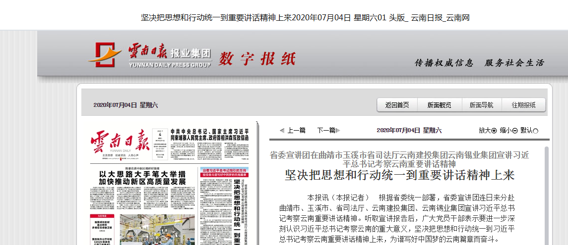 7月3日,深入學習宣傳貫徹習近平總書記考察云南重要講話精神省委宣講團在云南錫業集團(控股)有限責任公司進行宣講。