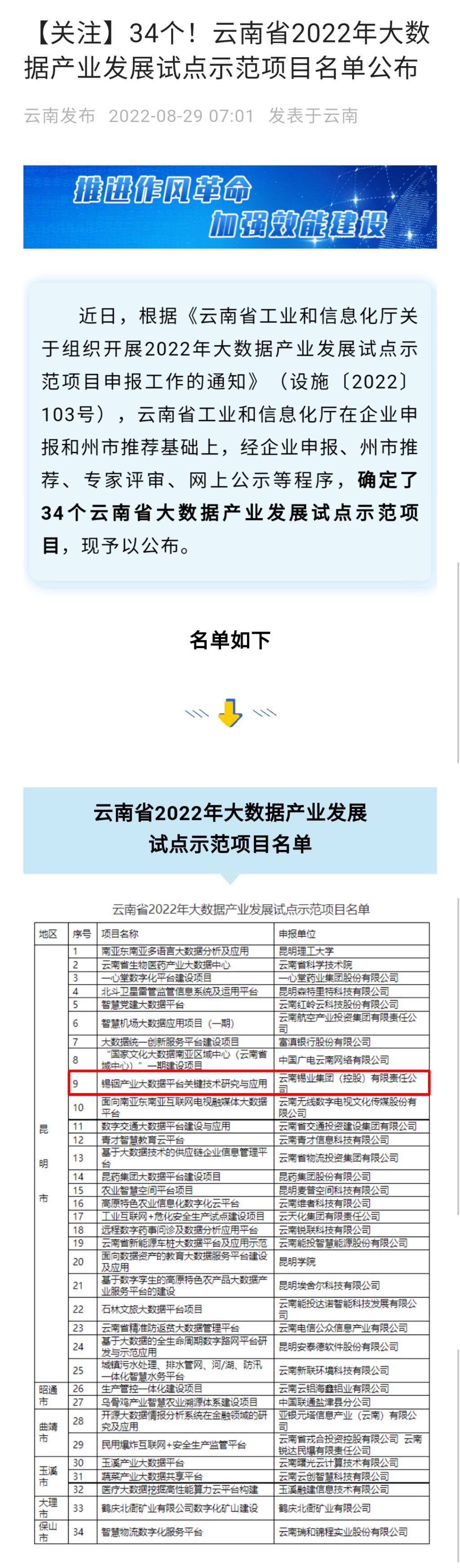 云南發布:34個!云南省2022年大數據產業發展試點示范項目名單公布