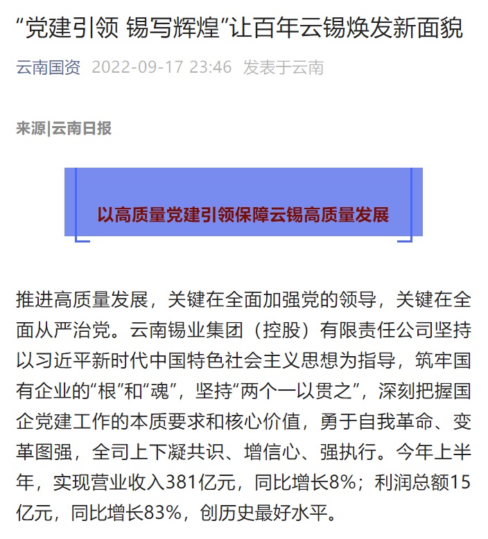 來源:新華財經(jīng)、國企黨建研究、云南政協(xié)報、云南國資、中國有色金屬報、文旅頭條、開屏新聞