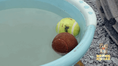 通過(guò)機(jī)械手臂,王仁沖可以從水盆里取出兩個(gè)網(wǎng)球,然后精準(zhǔn)放置到兩米之外的鋼管里。