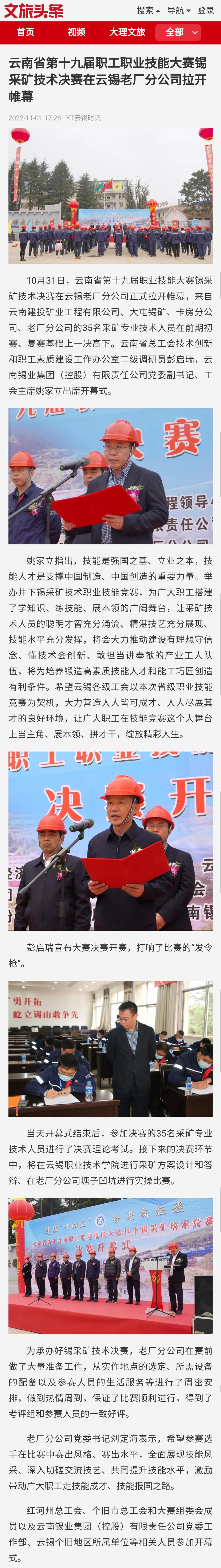 文旅頭條:云南省第十九屆職工職業技能大賽錫采礦技術決賽在云錫老廠分公司拉開帷幕
