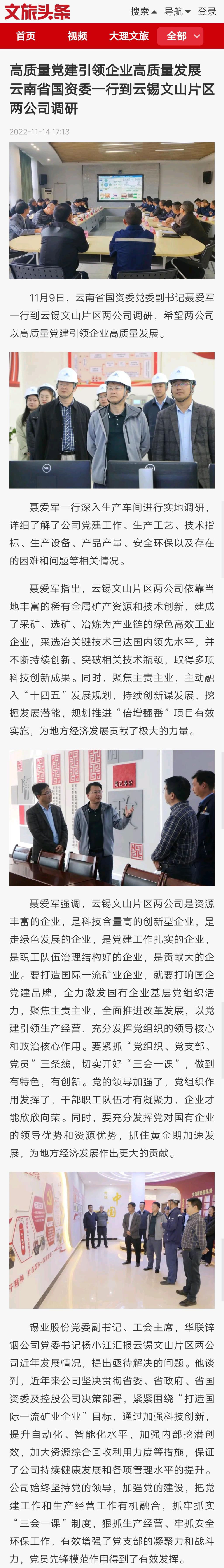 文旅頭條:高質量黨建引領企業高質量發展 云南省國資委一行到云錫文山片區兩公司調研