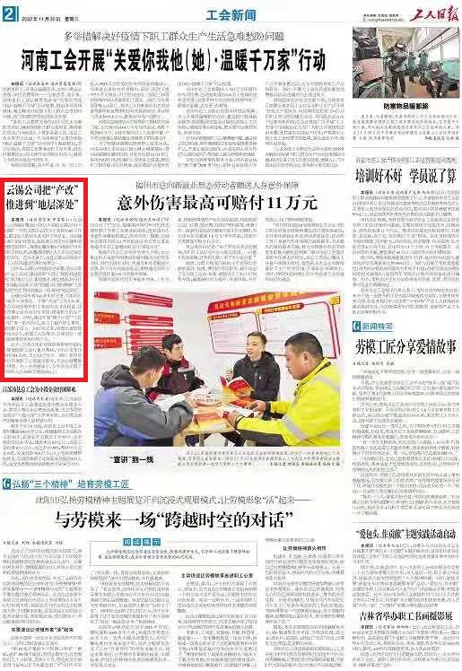 近年來,云錫公司按照全總部署,落實(shí)云南省產(chǎn)業(yè)工人隊(duì)伍建設(shè)改革“十四五”規(guī)劃,推進(jìn)思想引領(lǐng)、建功立業(yè)、素質(zhì)提升、地位提高、隊(duì)伍壯大5項(xiàng)重點(diǎn)任務(wù),打造“黨建引領(lǐng)、錫寫輝煌”主品牌,把“產(chǎn)改”推進(jìn)到基層一線,推向“地層深處”。