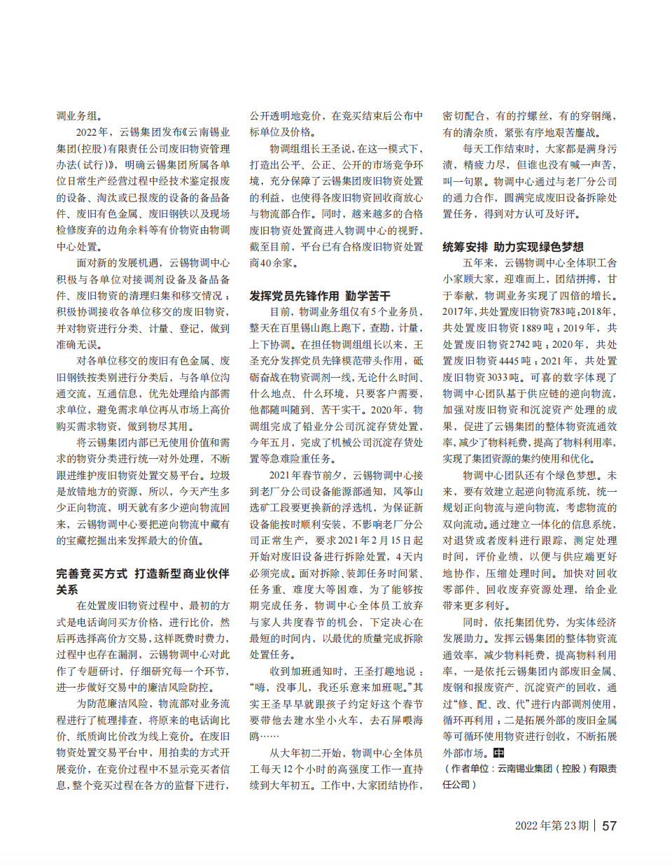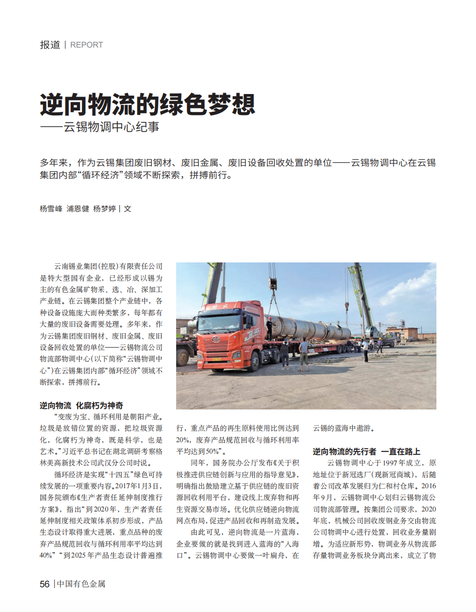 中國(guó)有色金屬雜志:逆向物流的綠色夢(mèng)想——云錫物調(diào)中心紀(jì)事