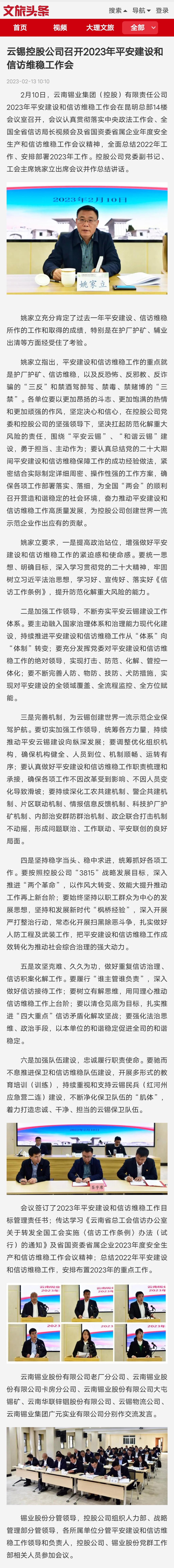 文旅頭條:云錫控股公司召開2023年平安建設和信訪維穩工作會