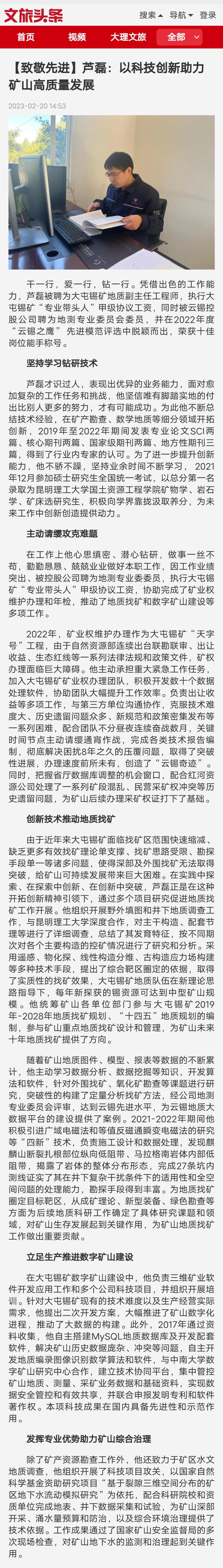 文旅頭條:【致敬先進】蘆磊:以科技創新助力礦山高質量發展