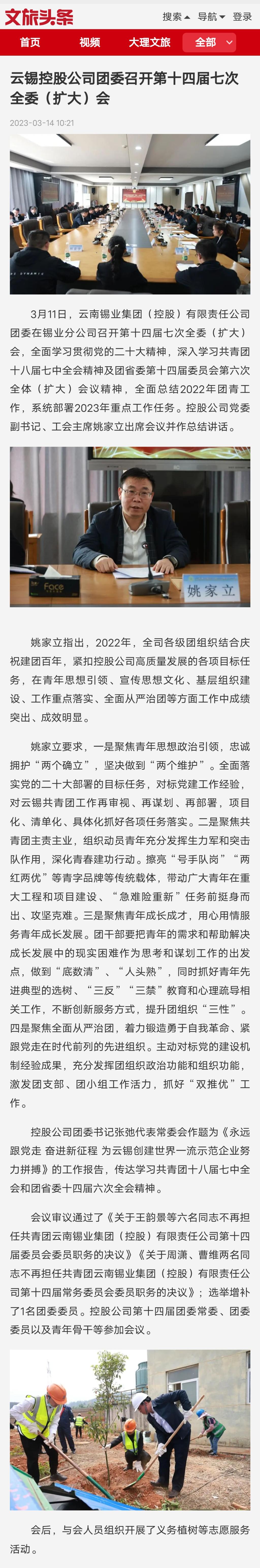 文旅頭條:云錫控股公司團委召開第十四屆七次全委(擴大)會
