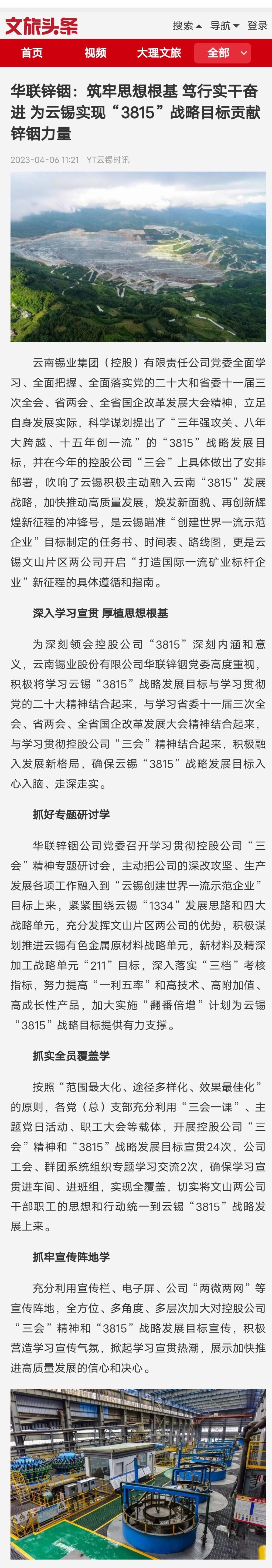 云南國資、文旅頭條:華聯鋅銦筑牢思想根基 篤行實干奮進 為云錫實現“3815”戰略目標貢獻鋅銦力量