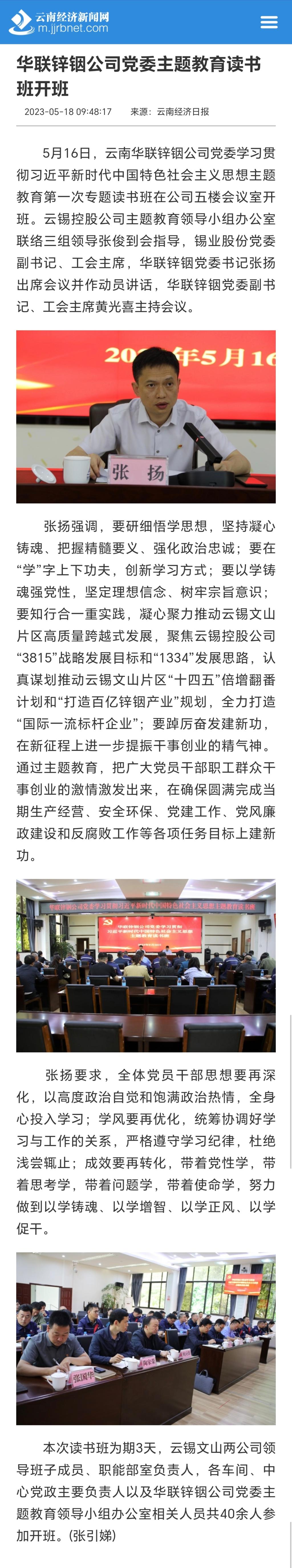 云南經濟日報:華聯鋅銦公司黨委主題教育讀書班開班