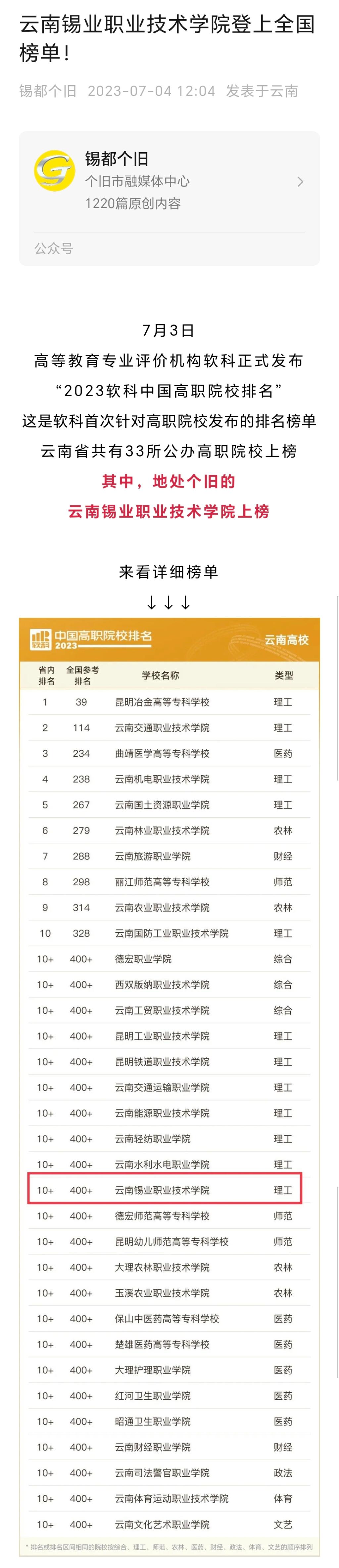 錫都個舊:云南錫業職業技術學院登上全國榜單!
