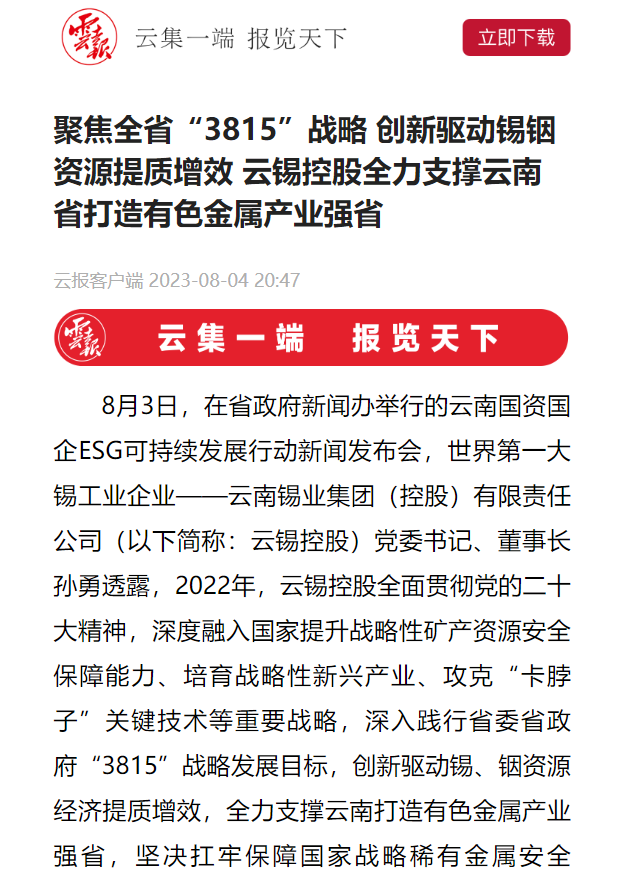 來源:新華社財經、人民網、云南發布、改革網、云南國資、云報客戶端、云南政協報、中國有色金屬報