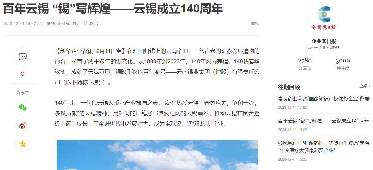 來源:新華財(cái)經(jīng)、人民政協(xié)網(wǎng)、中國經(jīng)濟(jì)新聞網(wǎng)、國企網(wǎng)、中宏網(wǎng)、信息早報(bào)、江西網(wǎng)絡(luò)廣播電視臺、商業(yè)快訊、企業(yè)家日報(bào)、鳳凰網(wǎng)、有色新聞