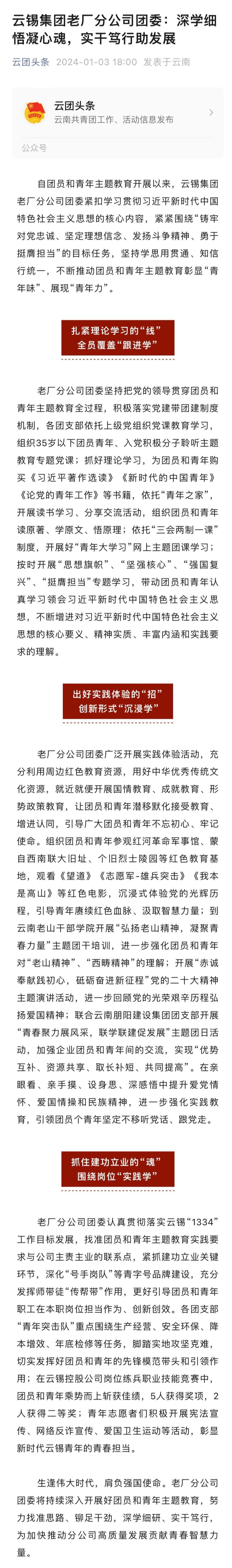 云團頭條:云錫集團老廠分公司團委深學細悟凝心魂,實干篤行助發展