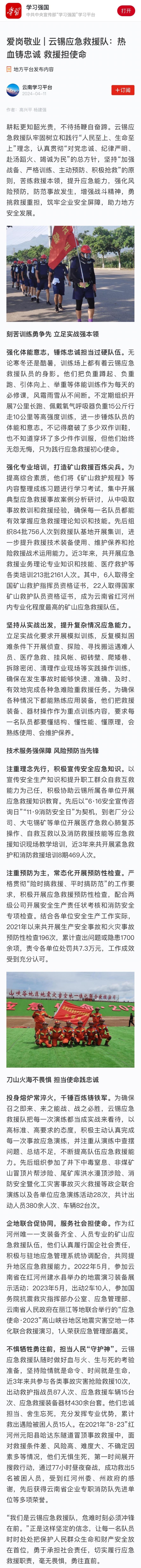 學習強國:【愛崗敬業】云錫應急救援隊:熱血鑄忠誠 救援擔使命