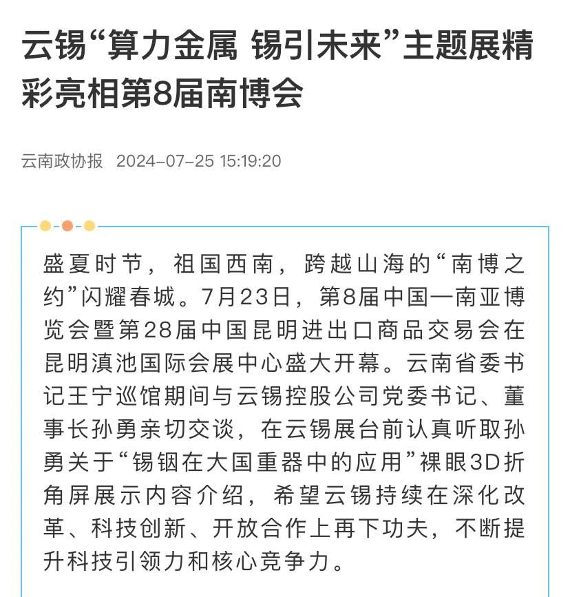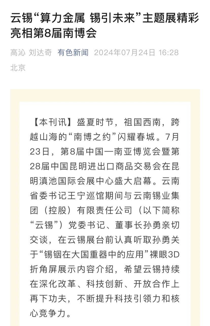 來源:央廣網(wǎng)、新華財(cái)經(jīng)、云南發(fā)布、云南日?qǐng)?bào)、云南網(wǎng)、云南經(jīng)濟(jì)日?qǐng)?bào)、云南國資、云南政協(xié)報(bào)、中國有色金屬報(bào)、有色新聞