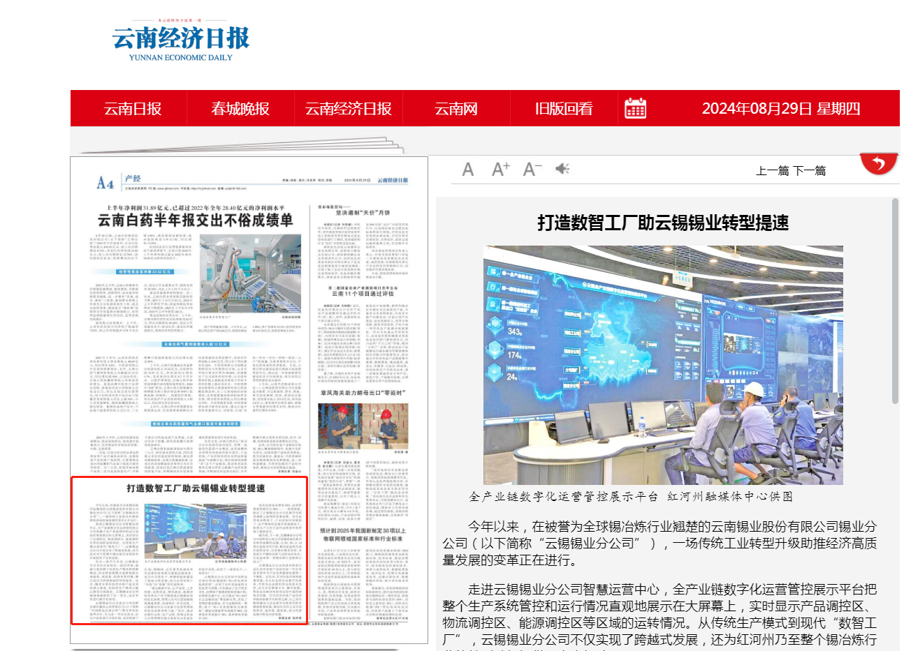 打造數(shù)智工廠助云錫錫業(yè)轉(zhuǎn)型提速