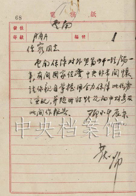 鄧小平親擬文電致宋任窮(圖源:中央檔案館)