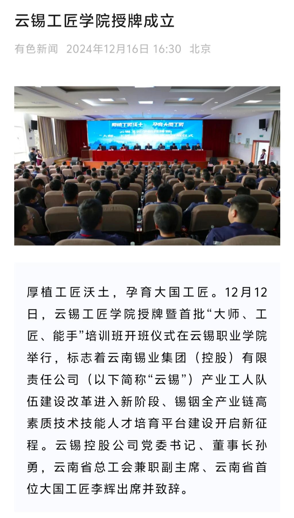 來源:新華財經、云南省總工會、中國有色金屬報、有色新聞
